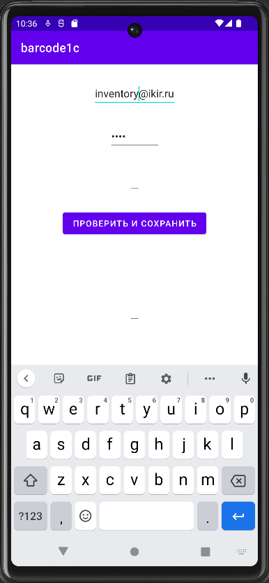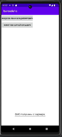 "Android-приложения barcode1c", которое следует установить на телефон.