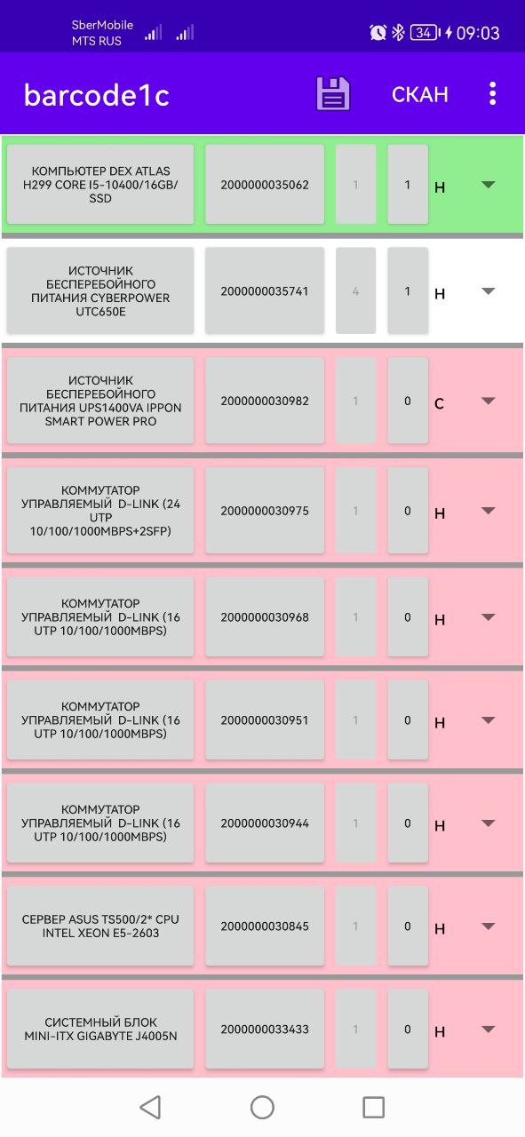 barcode1c позволяет сканировать штрих-коды основных средств, сравнивать их количество с данными из бухгалтерии, делать фото ОС и примечания к ним.